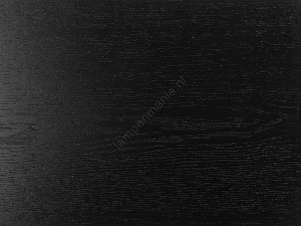 • Tafelblad en plank van zwart grof melamine, onderstel van mat zwart staal met een grove poedercoating.