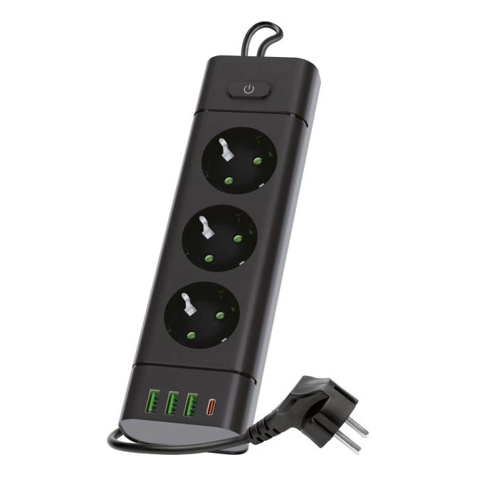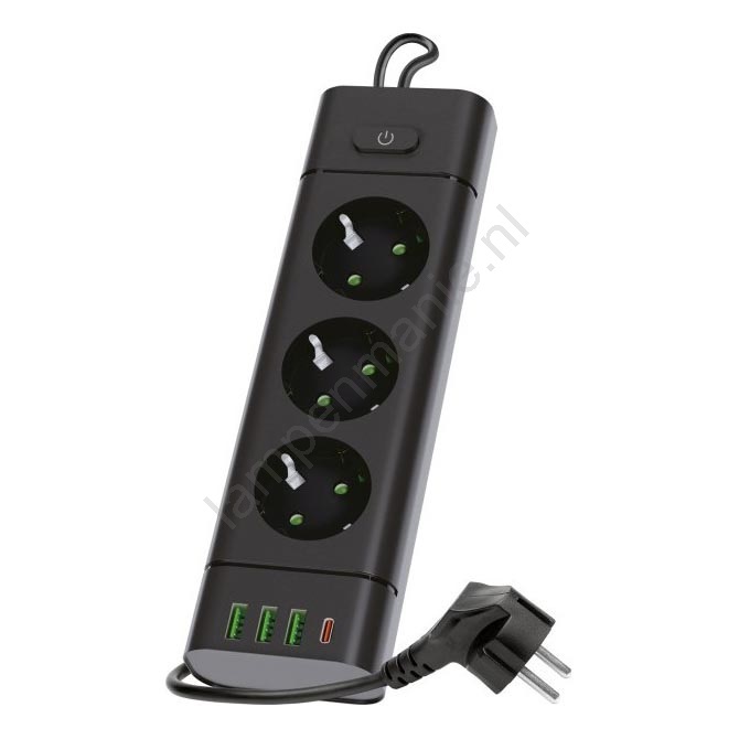 • Aantal aansluitingen: 3 x 230 V, 3 x USB-A en 1 x USB-C.