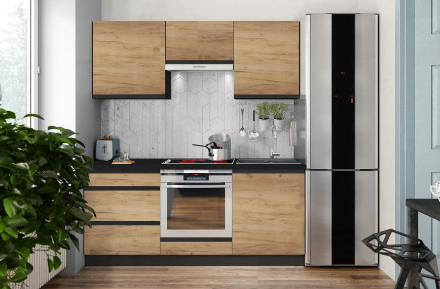 • Keukenblok MARINA 180 cm craft eiken/glanzend zwart