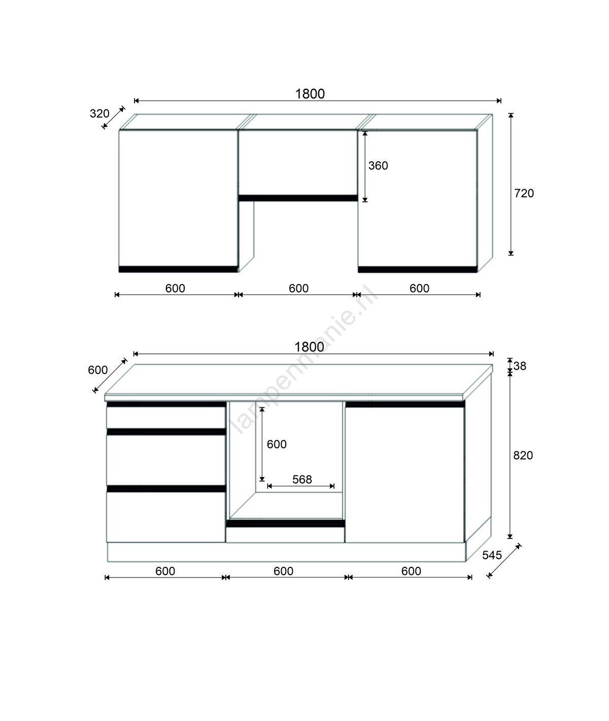 • De fronten van de bovenkasten en van de onderkast hebben een matte afwerking.