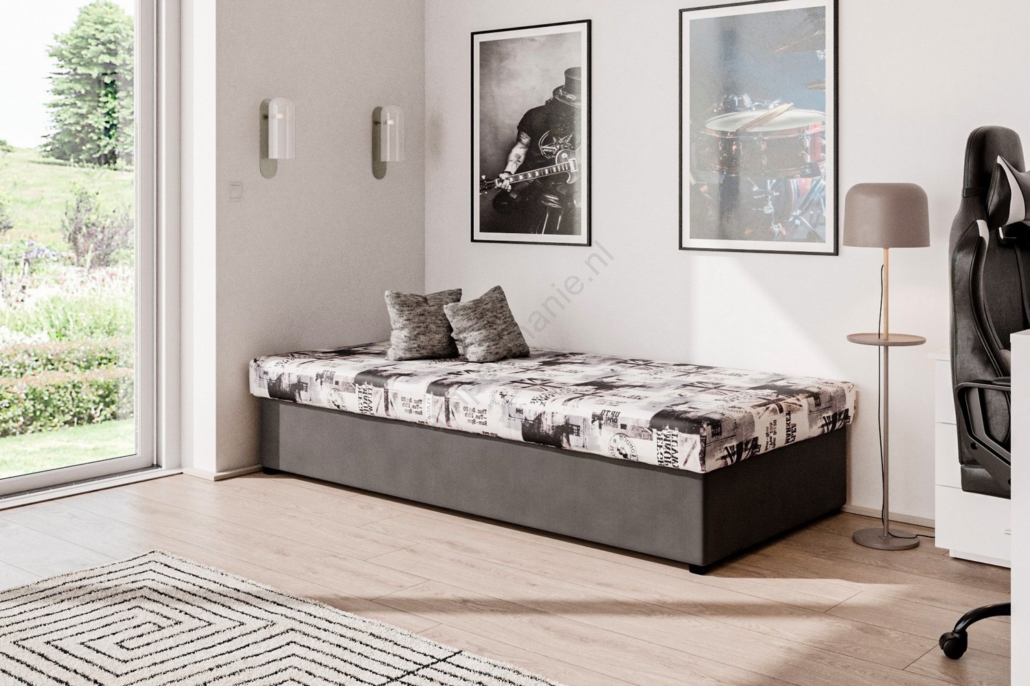 Bed NOE 90x200 met veringmatras en opbergruimte, grijs/zwart