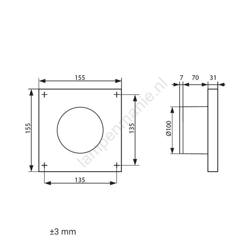 • De ventilator is compatibel met buizen met een diameter van 100 mm.