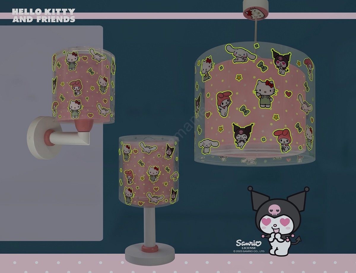 • Dalber 41259 - Kinderwandlamp HELLO KITTY&FRIENDS 1xE27/15W/230V roze