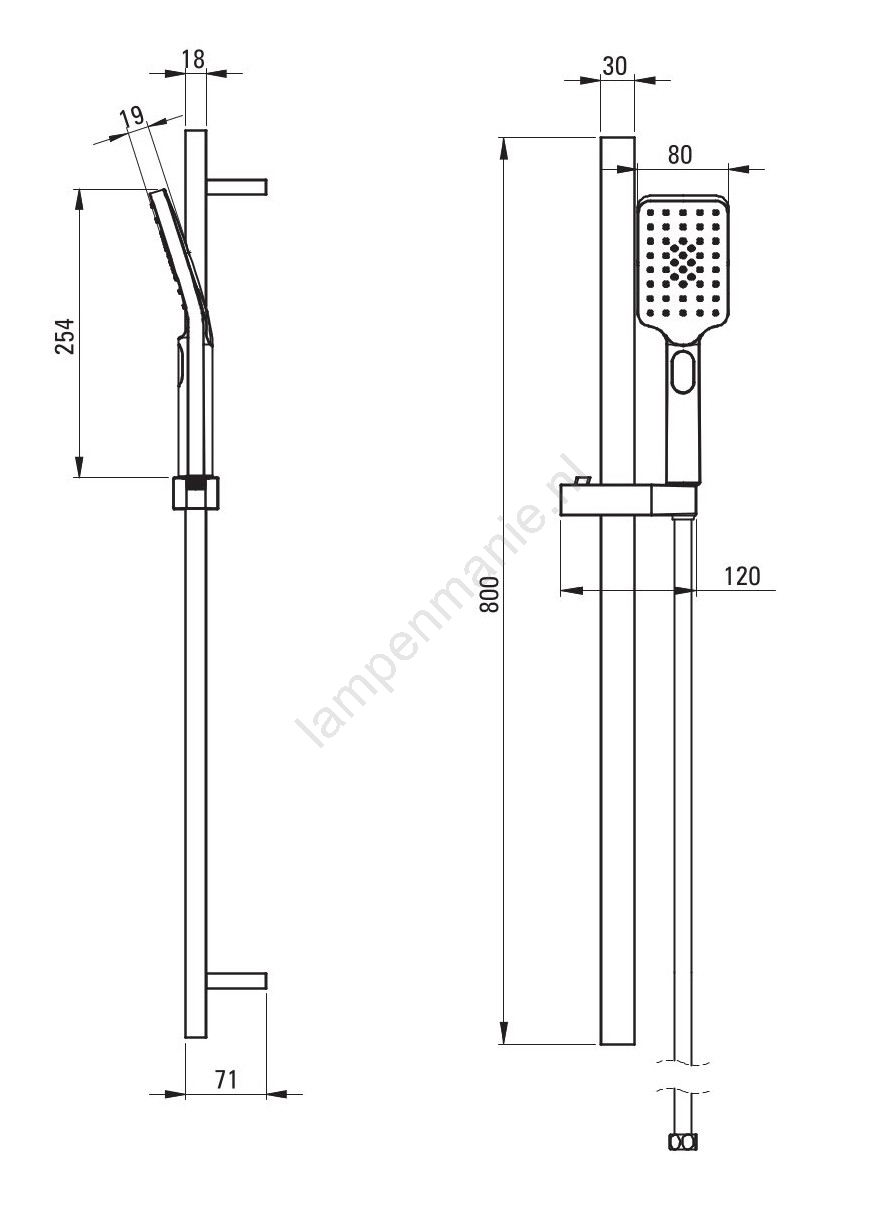 • Verstelbare hoek van de handdouche.