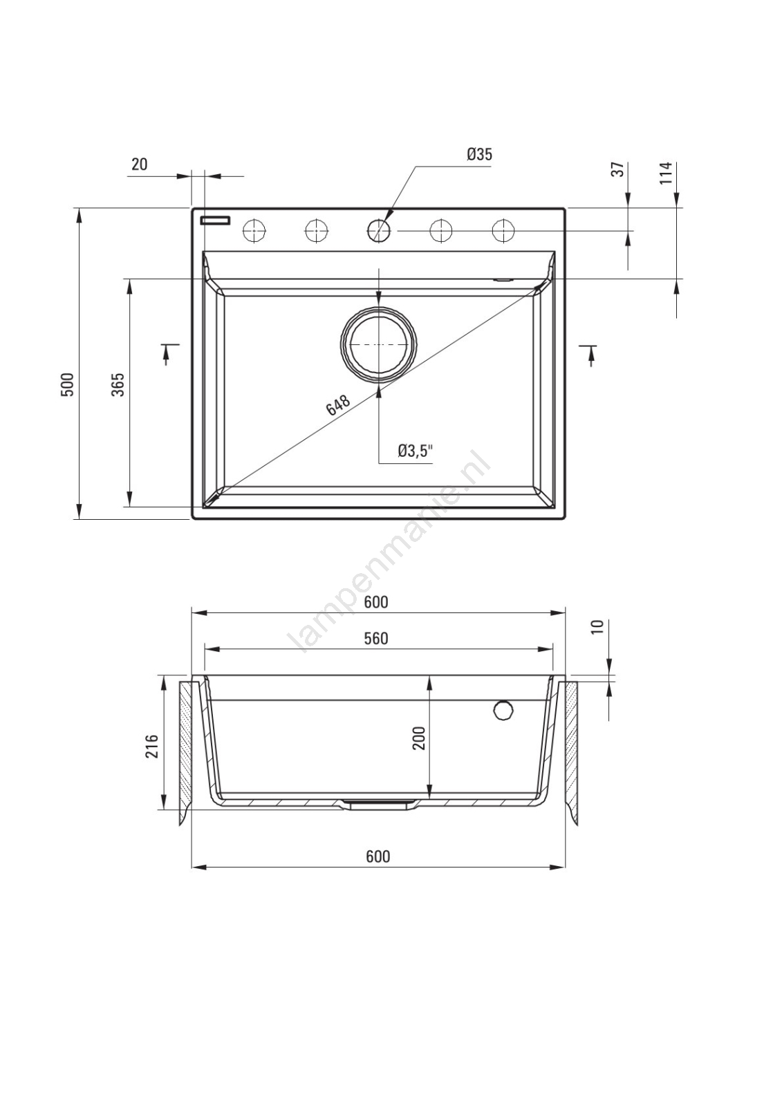 • Diameter van de afvoer: 3,5''.