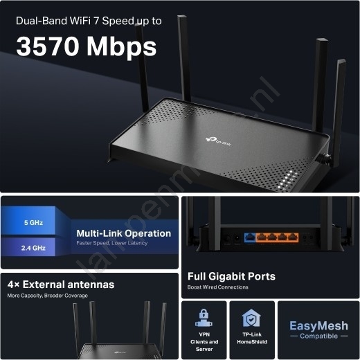 • Tweebands Wi-Fi 7 - Biedt snelheden tot 3,6 Gb/s.