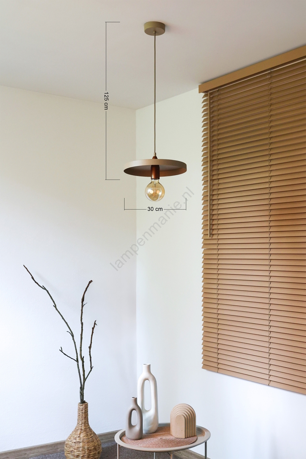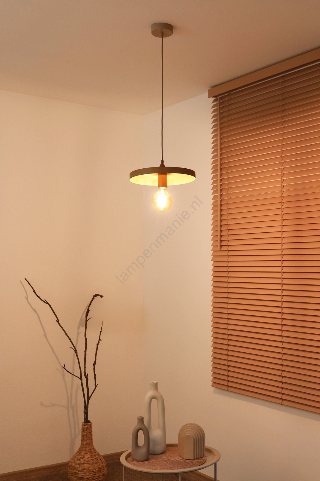 Duolla - Pendellamp aan kabel IRONLINE 1xE27/15W/230V Ø 30 cm beige/koper kenmerkt een mooi en functioneel ontwerp.  Voor het licht is een lamp met E27 fitting geschikt. Hier kunt u andere lampen tegen voordelige prijzen kopen. U heeft een interessante aanwinst voor uw woning.
