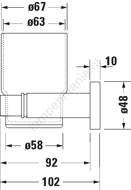 • Het glas is vervaardigd uit mat glas, wat zorgt voor een elegante en subtiele uitstraling.