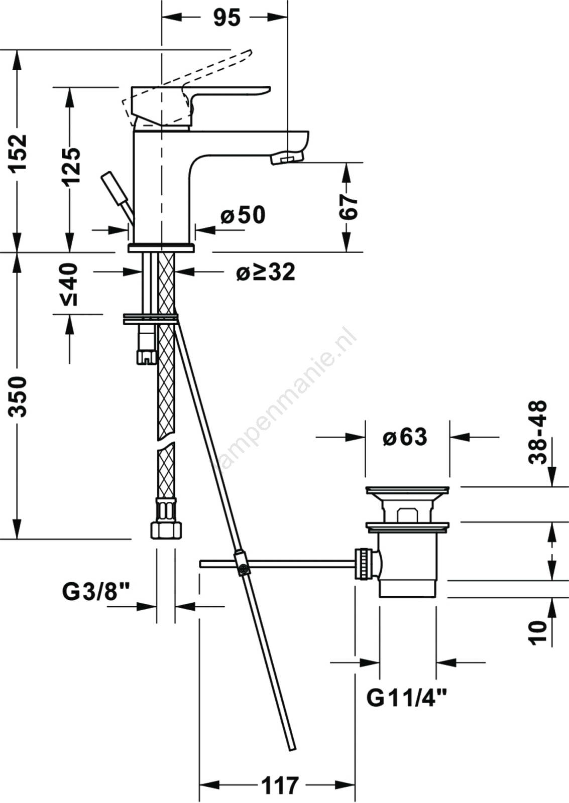 • Eengreeps wastafelmengkraan is bedoeld voor montage op de wastafel.