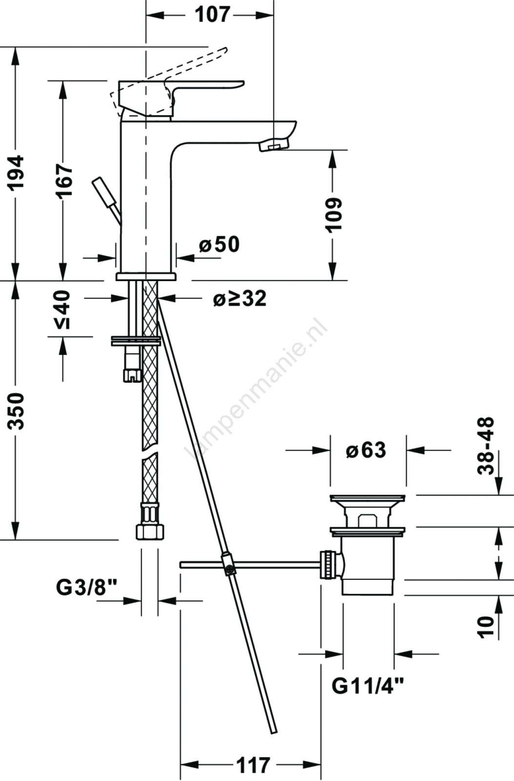 • De kraan is compatibel met flexibele aansluitslangen 3/8".
