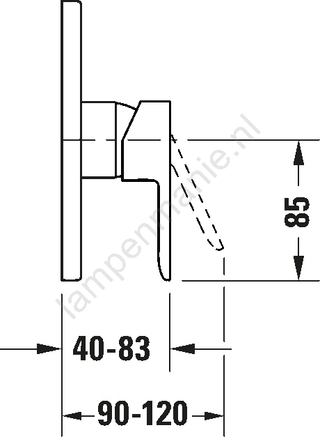• De diameter van de afdekrozet (de rozet die de opening in de wand bedekt) is 170 mm.