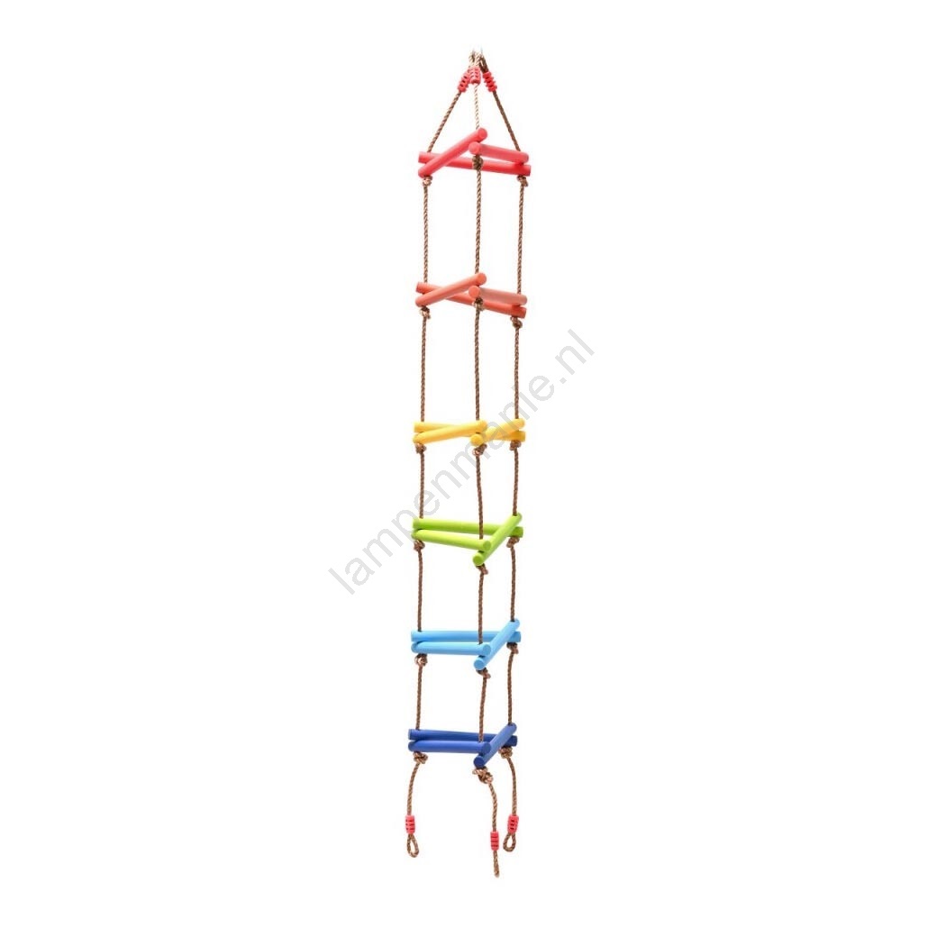 • De kleurrijke plastic ladder met drie zijden is weerbestendig.