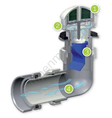 • Op de afbeelding in de galerij is in doorsnede het werkingsprincipe van het waterloze urinoir EcoStep P1.1 weergegeven: