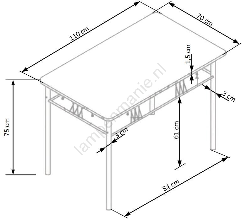 • Gemaakt van gelamineerde spaanplaat en metaal.