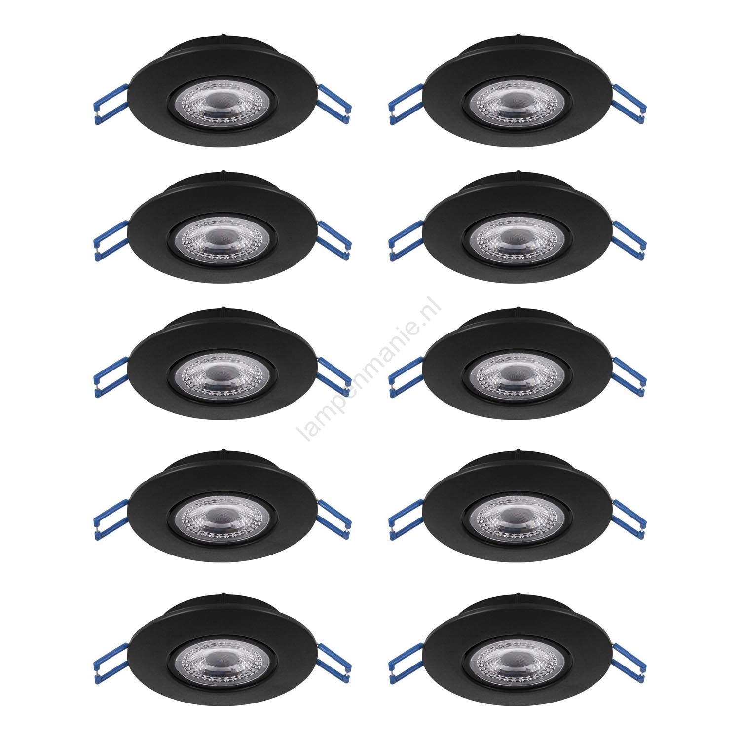 • Eglo - Set van 10 LED-inbouwspots 4,9W/230V 2700/4000/6500K Ø 9 cm zwart