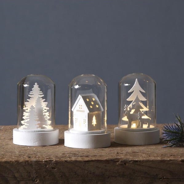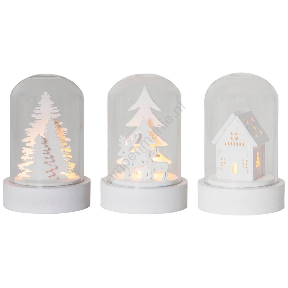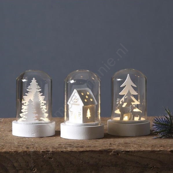 • LED Kerst decoraties met houten figuurtjes aan de binnenkant.