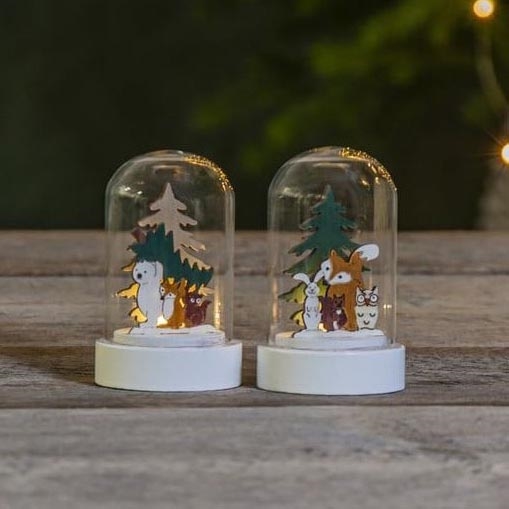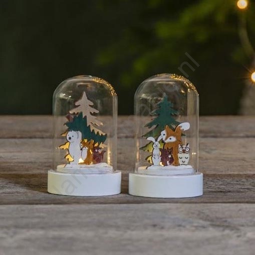 • Set met 2 LED kerst decoraties, gemaakt van hout uitgesneden door middel van een laser.