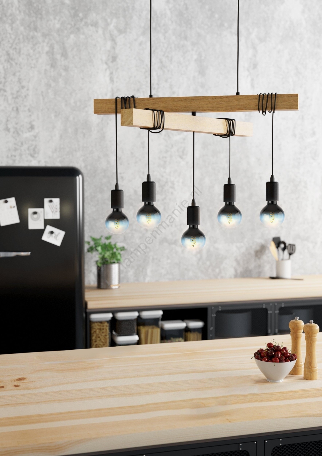 Eglo - Hanglamp aan een koord TOWNSHEND 5xE27/60W/230V kenmerkt een mooi en functioneel ontwerp.  Voor het licht is een lamp met E27 fitting geschikt. Hier kunt u andere lampen tegen voordelige prijzen kopen. U heeft een interessante aanwinst voor uw woning.