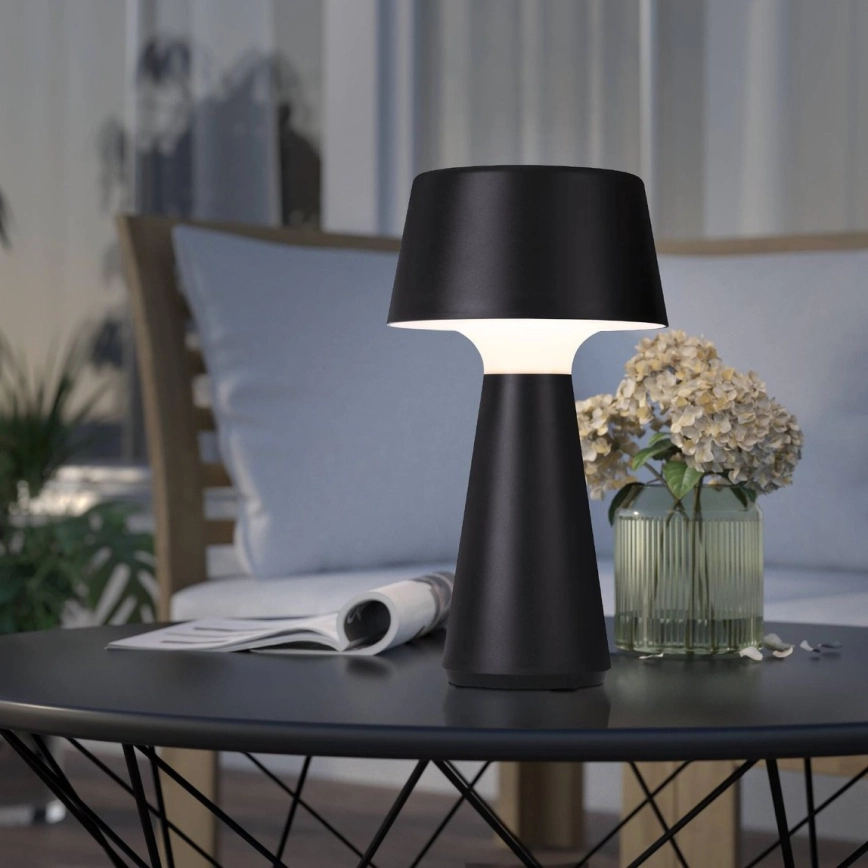 Eglo - Dimbare oplaadbare LED-buitentafellamp, 3W/5V, 2200/3000/4000K, 2000 mAh, IP44, zwart