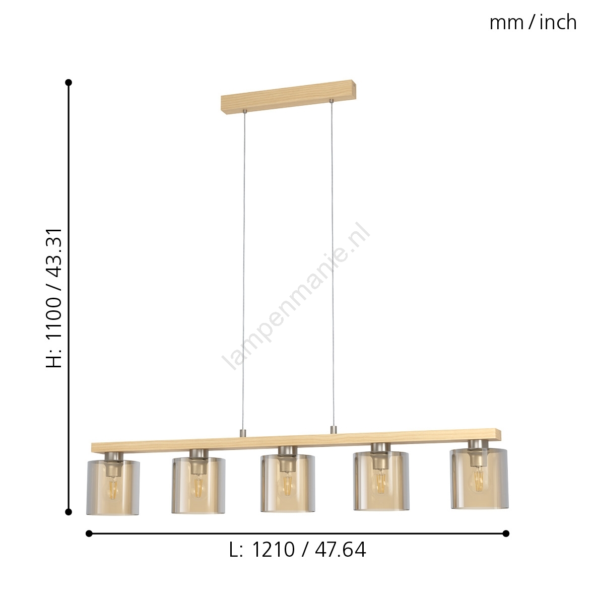 Eglo - Hanglamp aan kabel 5xE27/28W/230V kenmerkt een mooi en functioneel ontwerp.  Voor het licht is een lamp met E27 fitting geschikt. Hier kunt u andere lampen tegen voordelige prijzen kopen. U heeft een interessante aanwinst voor uw woning.