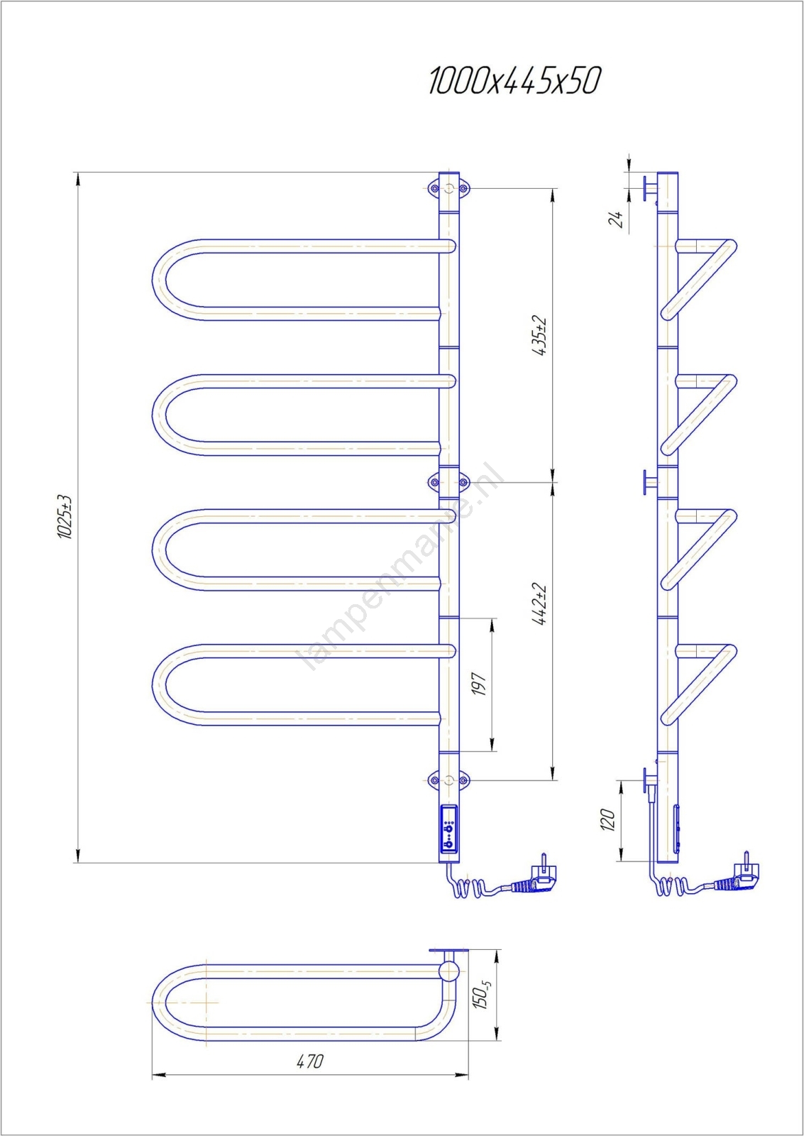 Elektrische draaibare handdoekdroger ELECTRA 120W/230V 100x44,5 cm RVS/chroom rechts