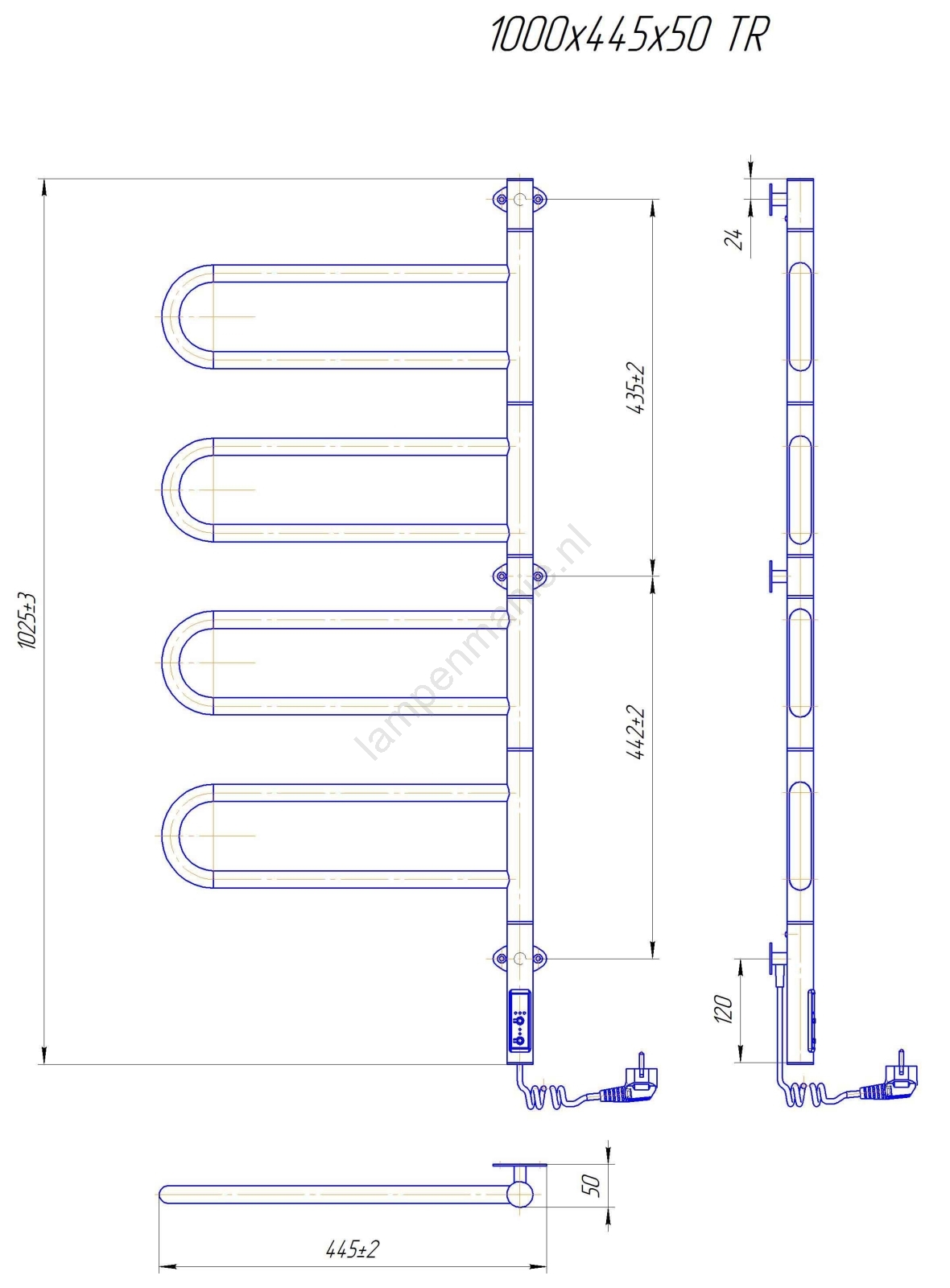 Elektrische draaibare handdoekdroger TRISTAR 105W/230V 102,5x44,5cm IP44 RVS/hoogglans chroom