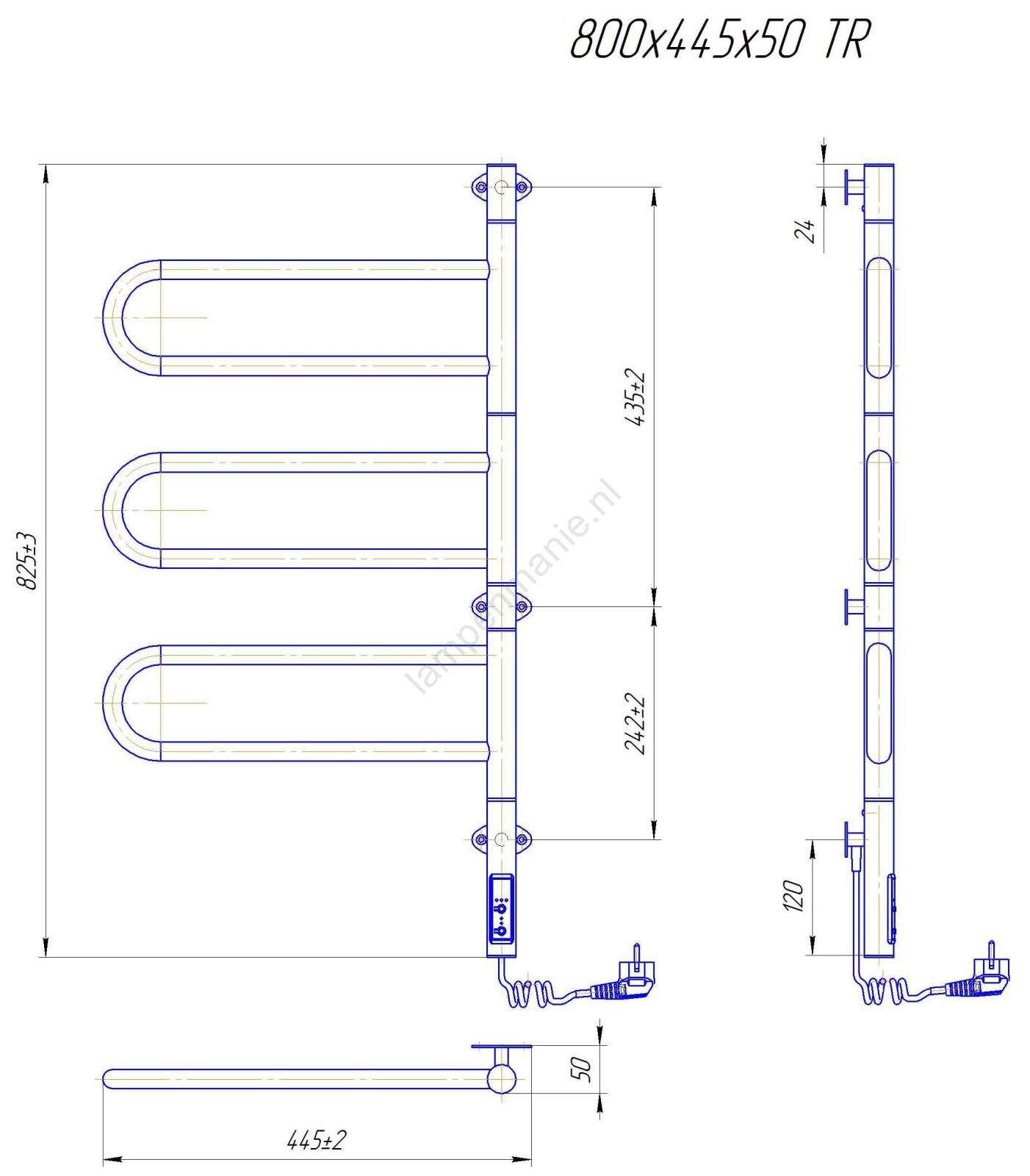 Elektrische draaibare handdoekdroger TRISTAR 80W/230V 80x44,5 cm IP44 RVS/glanzend chroom