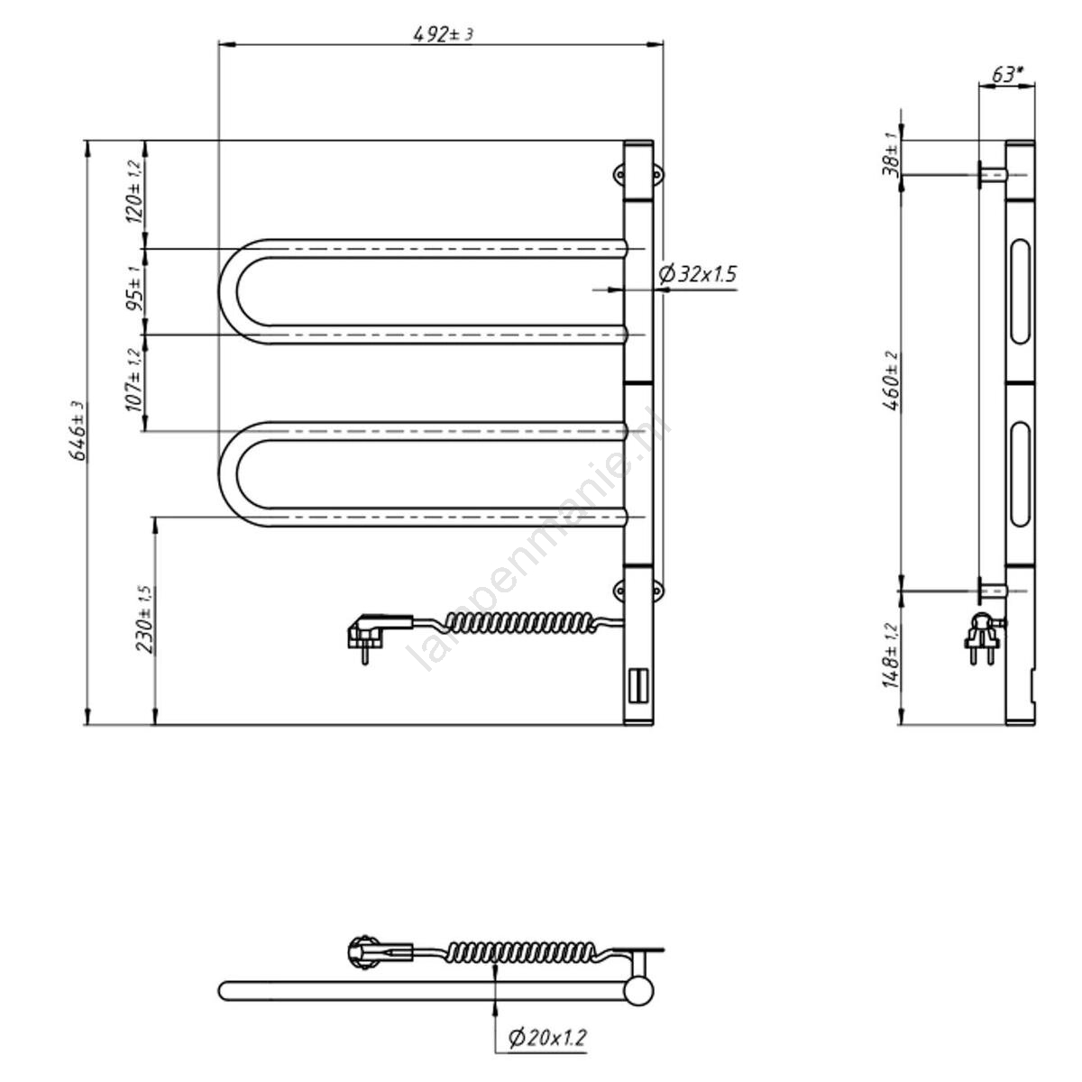 Elektrische draaibare handdoekdroger met thermostaat FOUETTE 60W 65x49 cm zwart