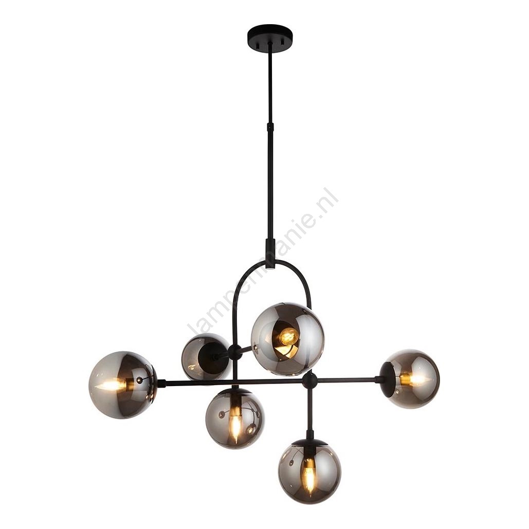 Endon 106661 - Kroonluchter met stang ONTARIO 6xE14/7W/230V zwart/rookzwart