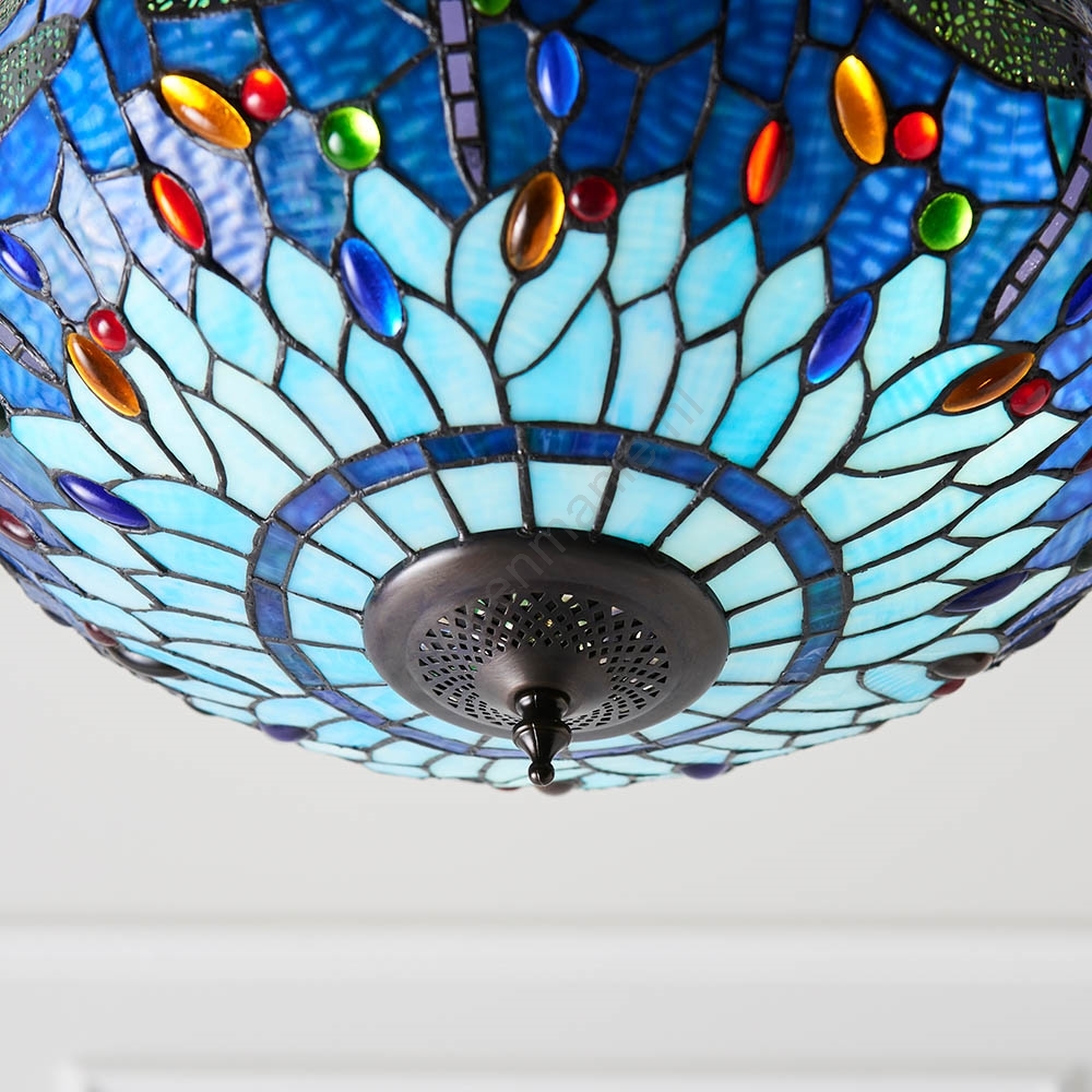 Endon 64075 - Tiffany-kroonluchter aan ketting DRAGONFLY 3xE27/60W/230V Ø 41 cm