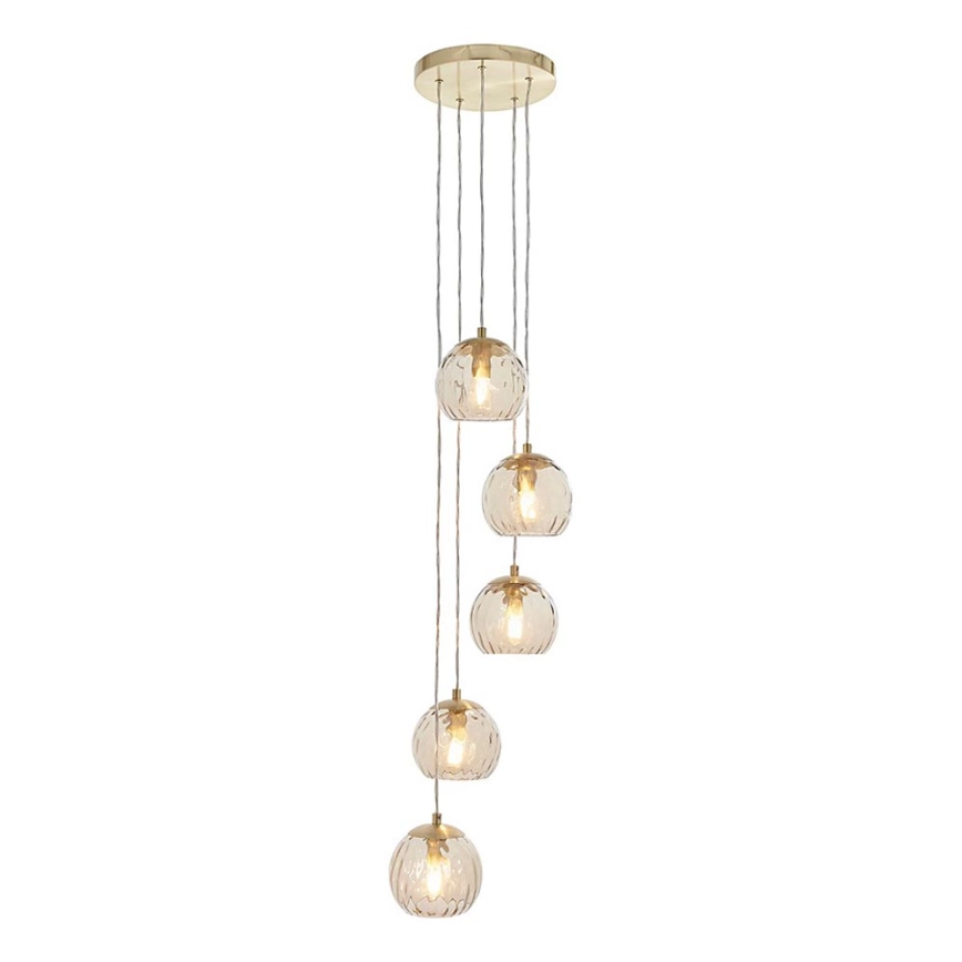 Endon 91972 - Kroonluchter aan kabel DIMPLE 5xE14/7W/230V goud/rookbeige