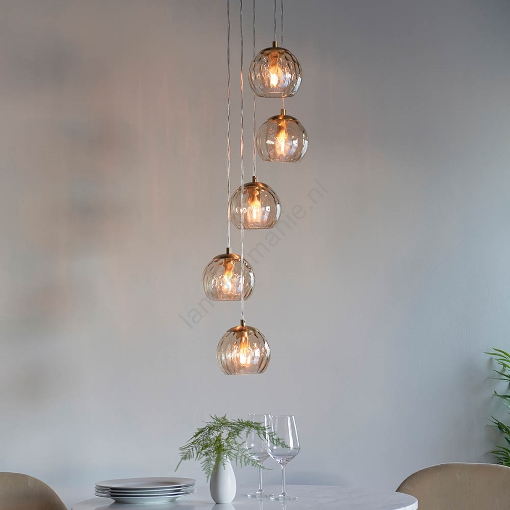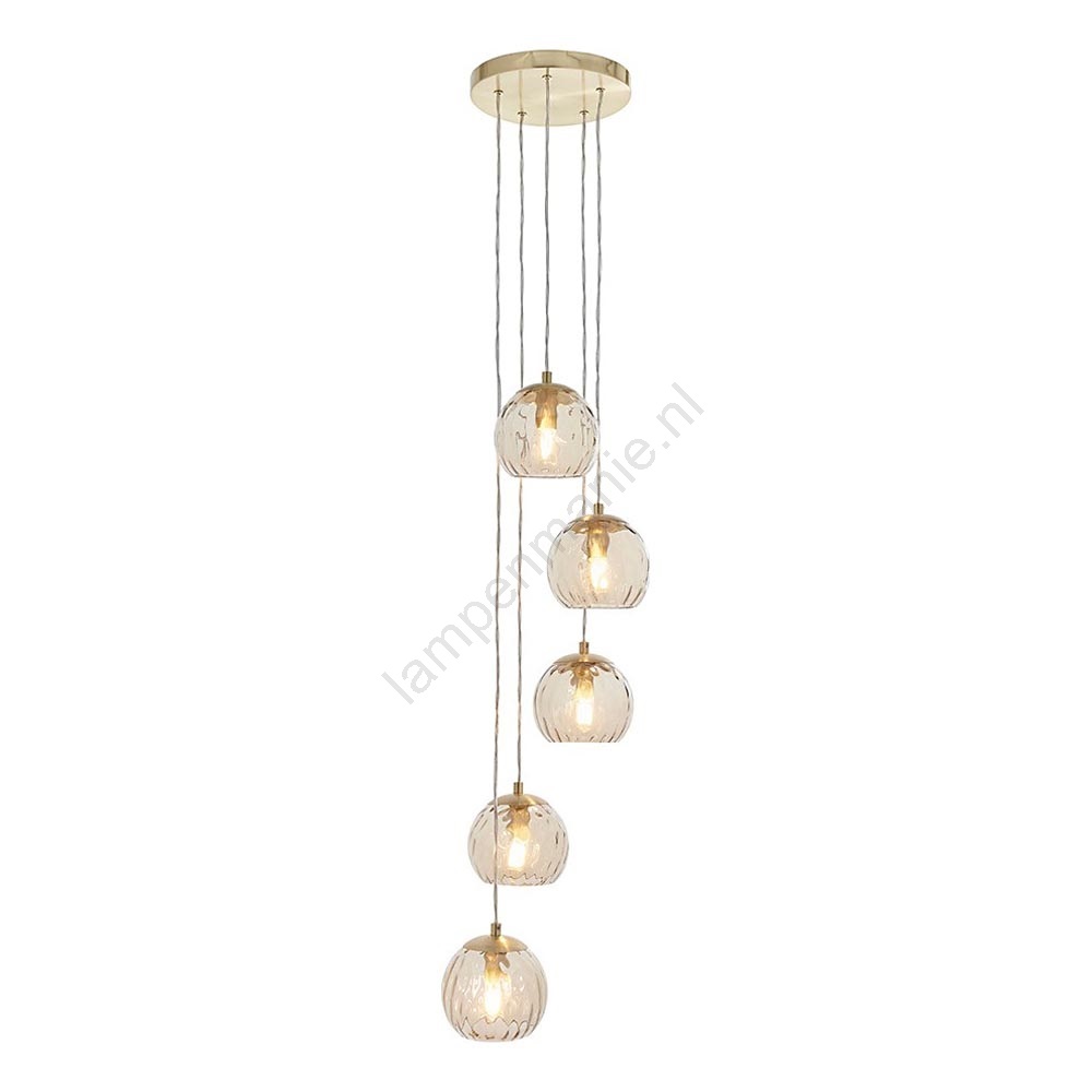 Endon 91972 - Kroonluchter aan kabel DIMPLE 5xE14/7W/230V goud/rookbeige kenmerkt een mooi en functioneel ontwerp.  Voor het licht is een lamp met E14 fitting geschikt. Hier kunt u andere lampen tegen voordelige prijzen kopen. U heeft een interessante aanwinst voor uw woning.
