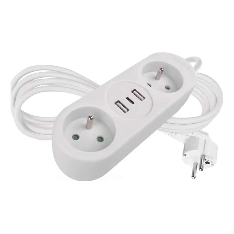 Verlengsnoer met 2 stopcontacten + 2x USB-A + USB-C, 1,4 m