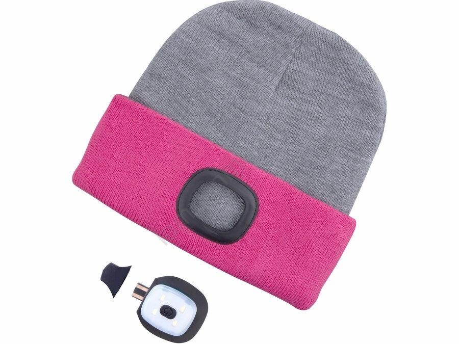 Extol - Muts met geïntegreerde hoofdlamp en USB-oplaadbare 300 mAh-batterij, grijs/roze, maat UNI