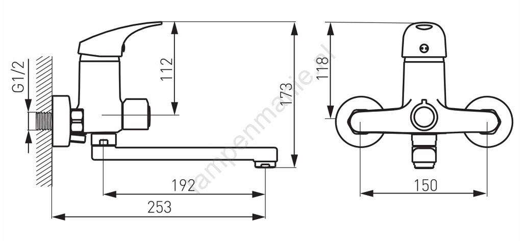 • Deze wandkraan voor bad, speciaal ontworpen voor appartementen, is een elegante aanvulling op elke badkamer.