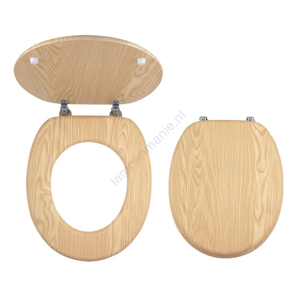 • Toiletbril met houtdecor.
