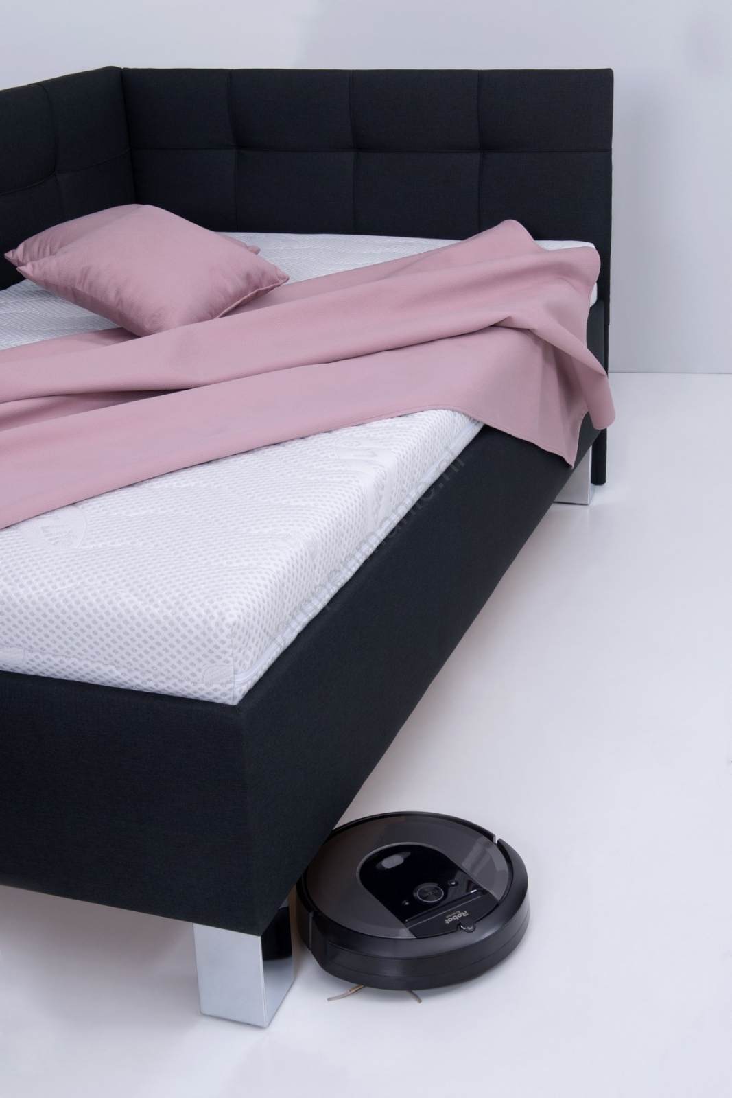 • De stabiele en strak vormgegeven 15 cm lange poten in chroom benadrukken niet alleen het moderne uiterlijk van het bed, maar maken ook schoonmaken eenvoudig, zelfs met behulp van een robotstofzuiger.
