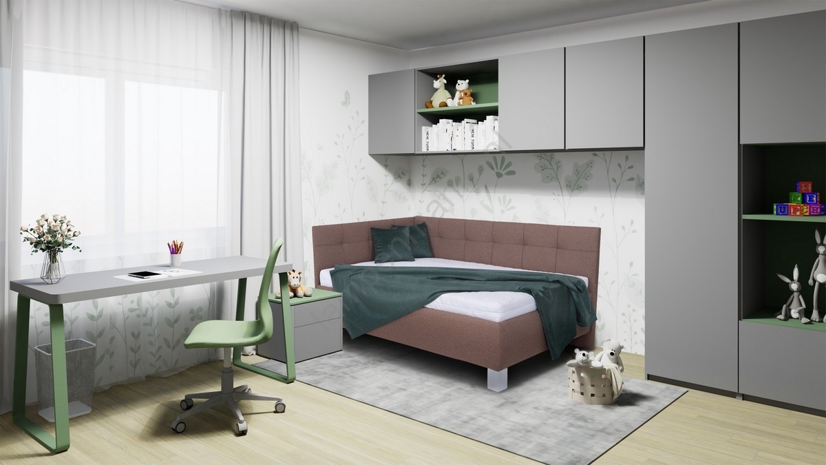 • Gestoffeerd bed met opbergruimte zonder matras MARIA PETITE 120x200 cm grijs