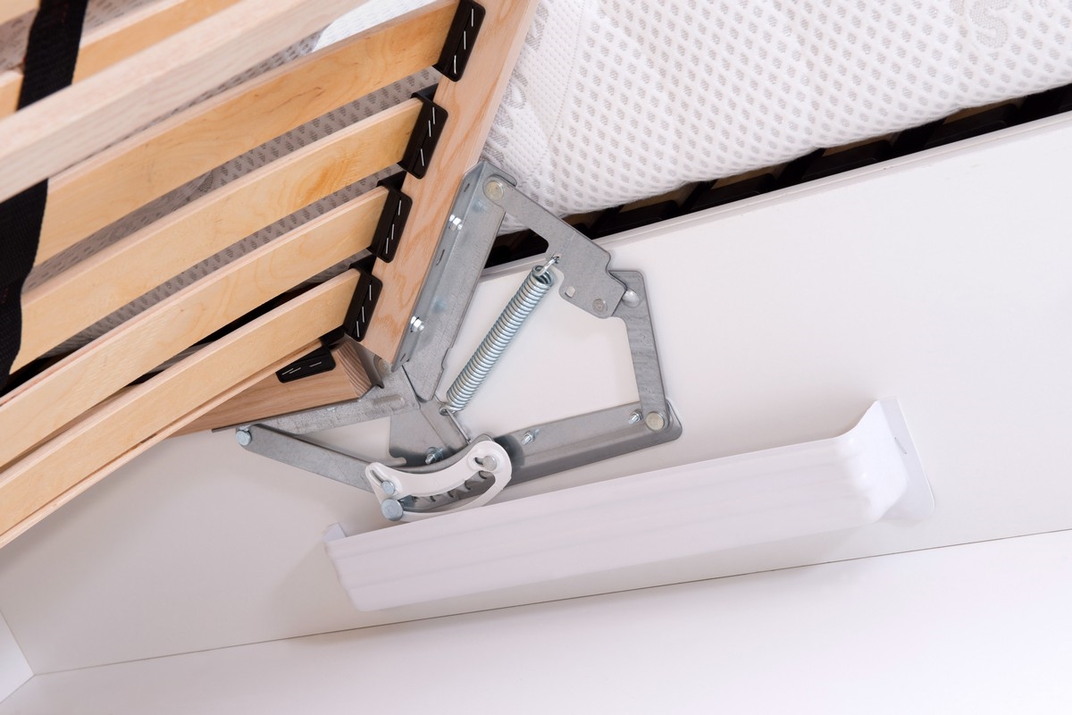 • Het bed is uitgerust met een ruime opbergruimte met ventilatieroosters voor het opbergen van beddengoed of seizoensartikelen.
