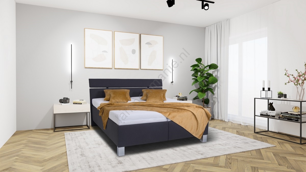 • Gestoffeerd tweepersoonsbed met losse matrassen, biedt maximaal comfort en praktische functies voor perfecte ontspanning.