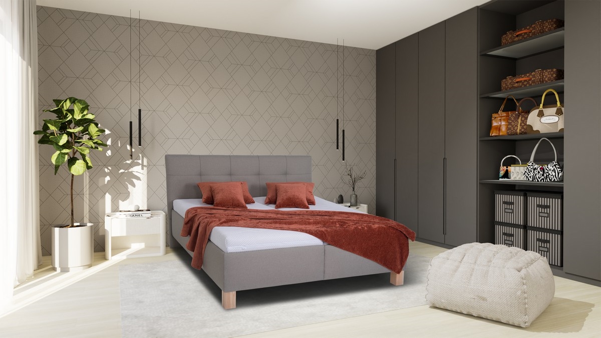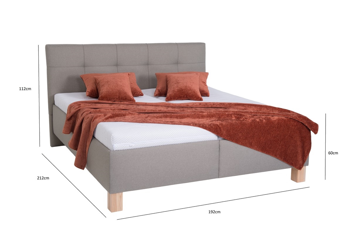• Gestoffeerd tweepersoonsbed MARIA 180x200 cm met matras en opbergruimte, taupe