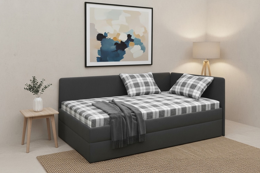 Gestoffeerd bed ARLY 110x200 cm met omkeerbaar hoofdeinde (links/rechts), antraciet/wit