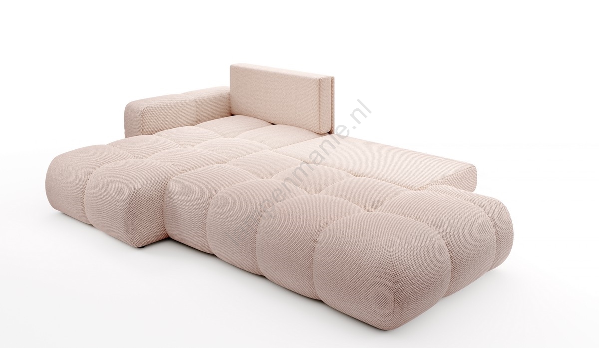 • ALMADA L-vormige uitklapbare gestoffeerde hoekbank met opbergruimte, links, licht beige