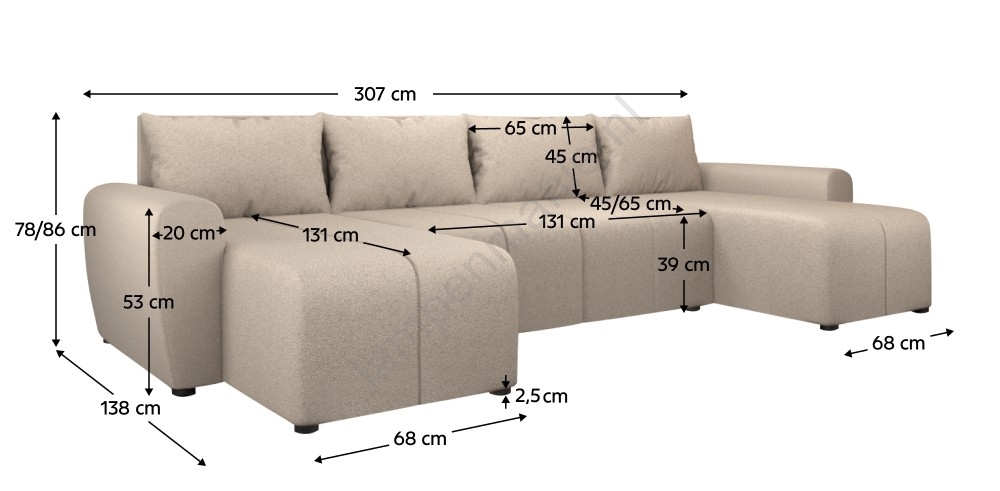 • Gestoffeerde universele U-vormige hoekbank met slaapfunctie NEWPORT beige