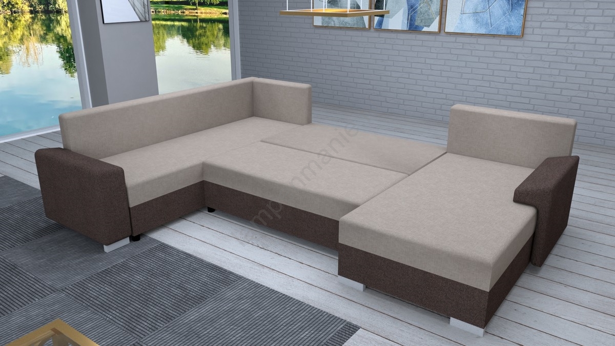 • Gestoffeerde universele uitklapbare U-vormige bank OXFORD bruin/taupe