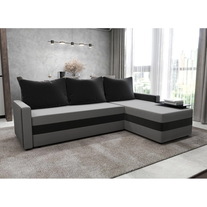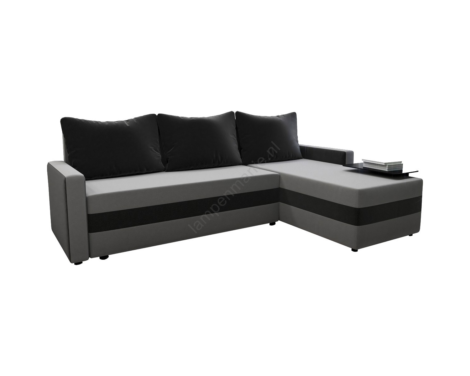 • Gestoffeerde, omkeerbare L-hoekbank met slaapfunctie BRISTOL grijs/zwart
