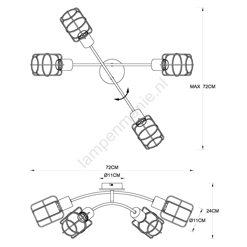 Globo - Plafondkroonluchter 4xE27/40W/230V kenmerkt een mooi en functioneel ontwerp.  Voor het licht is een lamp met E27 fitting geschikt. Hier kunt u andere lampen tegen voordelige prijzen kopen. U heeft een interessante aanwinst voor uw woning.
