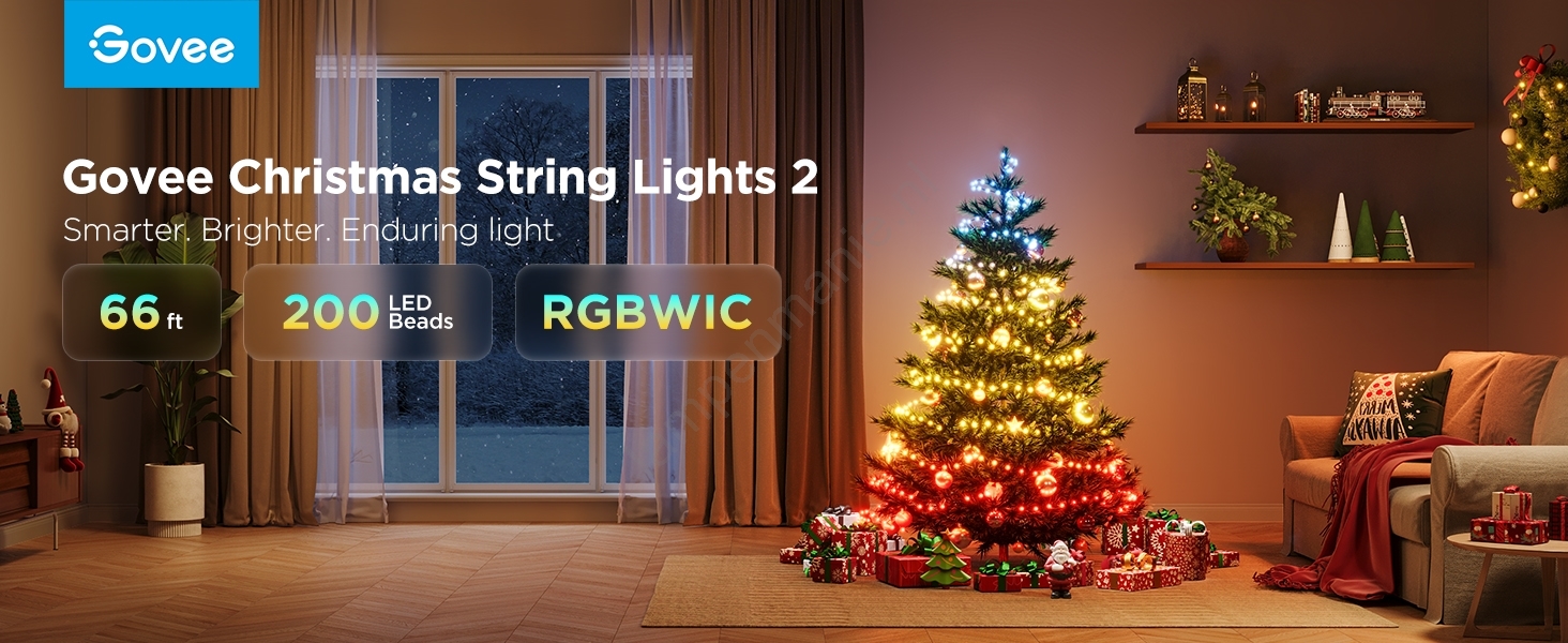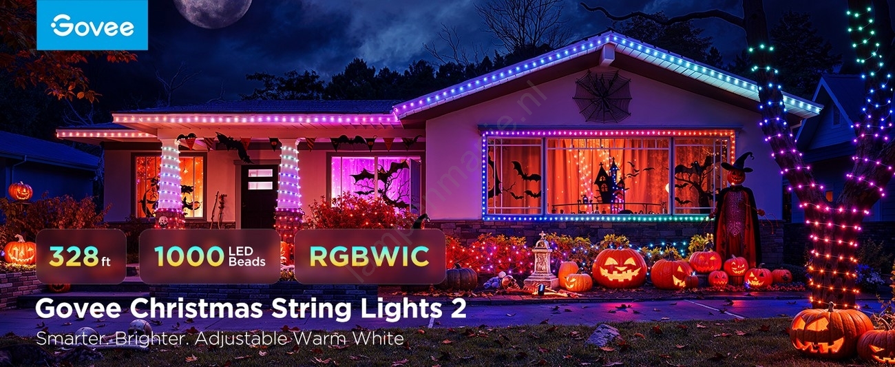 Govee - LED RGBICW Buiten Kerst lichtsnoer 2700-6500K 20m Wi-Fi Matter IP66