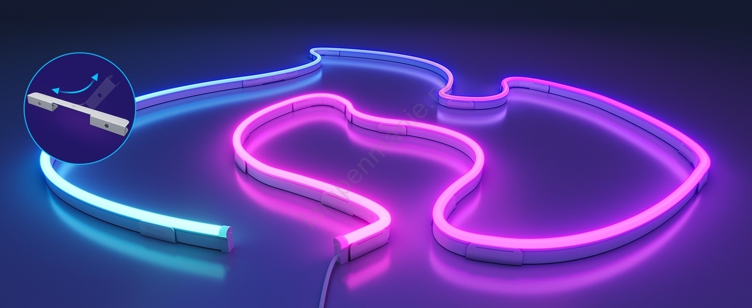 • Inhoud van de verpakking: 1x buigbare LED-neonstrip, 1x netadapter, zelfklevende clips, schroeven.