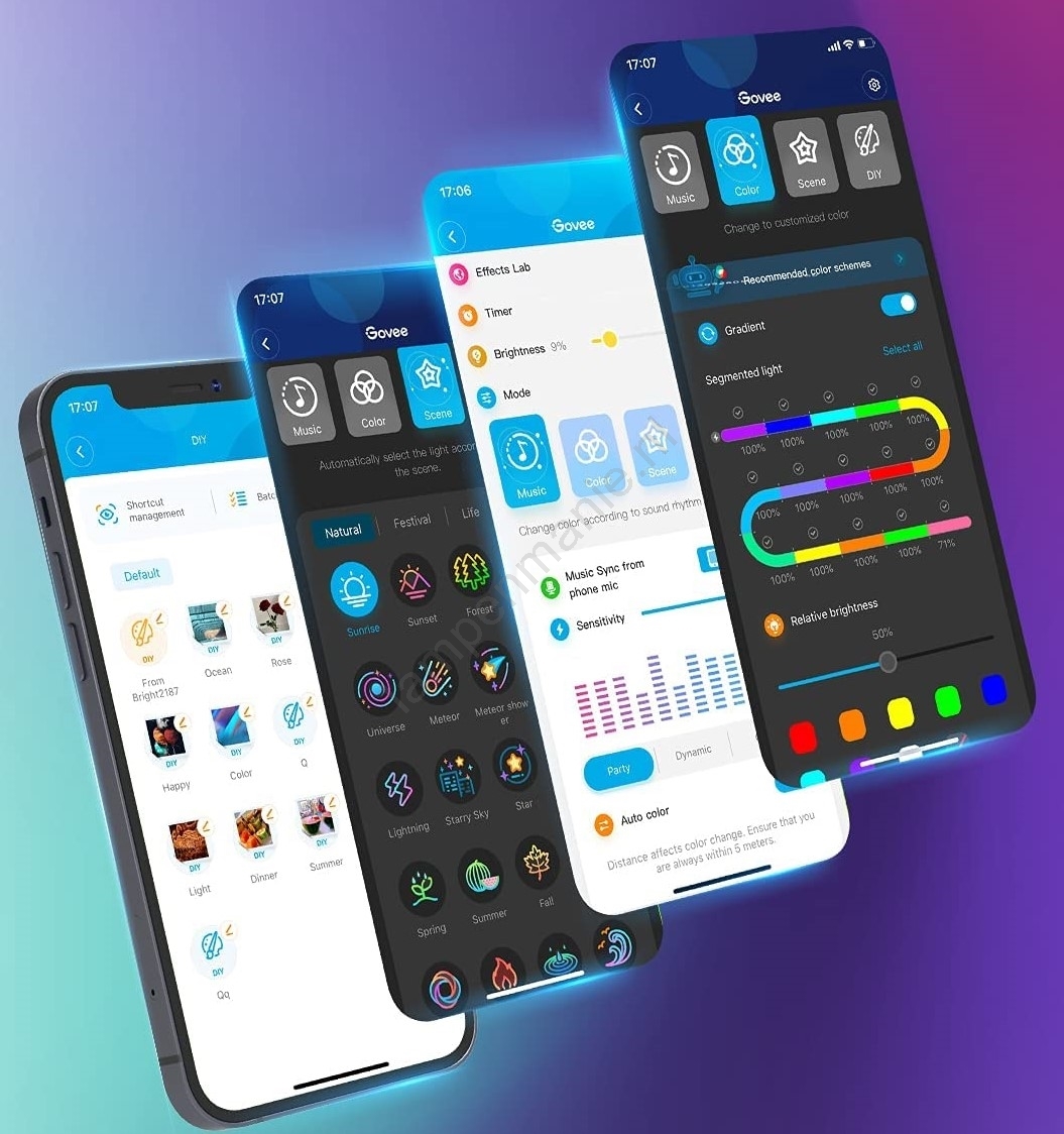 • Beheer kleur- en lichtintensiteitsinstellingen eenvoudig via de Govee Home-app (compatibel met iOS en Android).